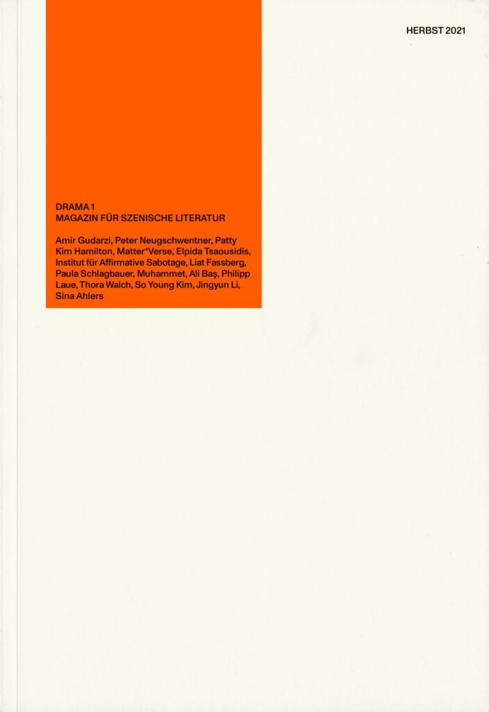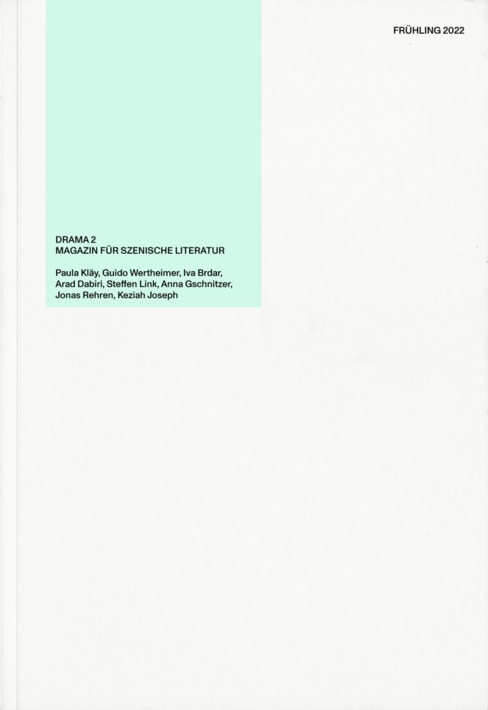 DRAMA is a magazine for dramatic literature. Since the launch of our project in spring 2021, a network has formed around DRAMA, in which people engage in dialogue and promote the magazine. It was initiated by Swen Lasse Awe and Jonas Schönfeldt. The editorial teams meet anew for each issue. For DRAMA 1, these were Emel Aydoğdu, Elvin İlhan, Dorothea Lautenschläger, Saskia Nitsche, Roxana Safarabadi, and Hannah Stollmayer. Christopher-Fares Köhler and Mariann Yar join the team for DRAMA 2. DRAMA is designed by Emil Kowalczyk and Paulina Mohr.